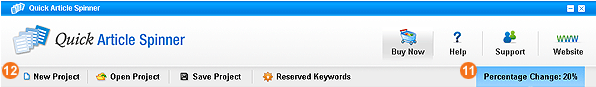 ‘Percentage change’ information shows the percentage of the selected words that you want to spin out of the total number of words. |