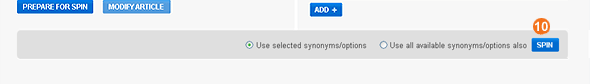 ‘Modify Article’ is a button next to the ‘Prepare for Spin’ button. On clicking this button the text in the ‘Article Text’ becomes editable and you can make necessary changes in the text. After making necessary changes you have to again click on ‘Prepare for Spin’ button. |